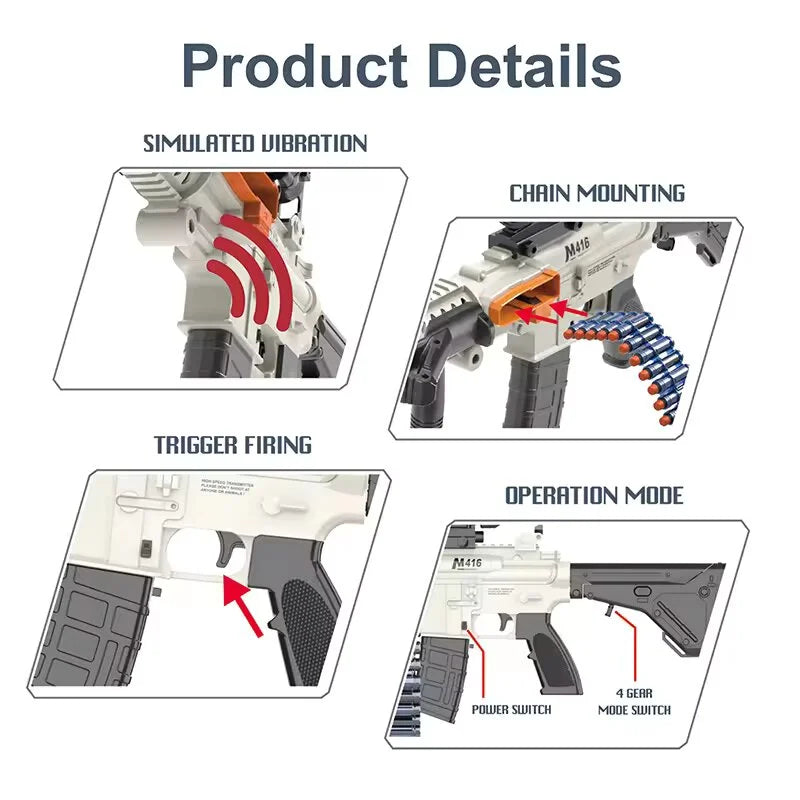 Équipez-vous du pistolet blaster motorisé automatique HK416 pour des batailles palpitantes et un jeu stratégique. Idéal pour les passionnés et les collectionneurs.