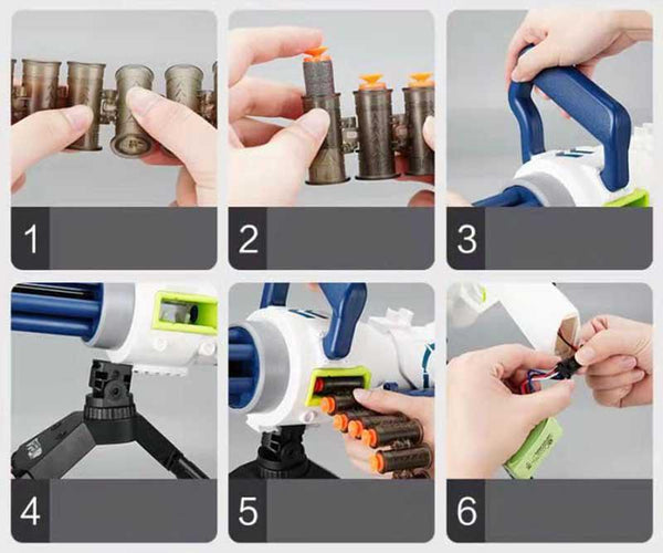 • Aspect exquis et texture métallique : la surface de peinture électrolytique soigneusement assortie améliore non seulement la sensation métallique du corps du pistolet, mais donne également à ce pistolet Gatling un aspect plus cool. Les couleurs vives et les détails exquis en font un jouet accrocheur.