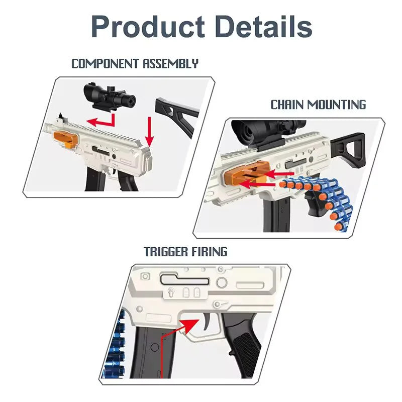 Conception de sécurité : balles souples en mousse, sûres et non nocives, les balles sont souples et élastiques, et le tir à courte portée ne causera pas de dommages au corps humain. Vous n'avez pas à vous soucier de vous blesser en jouant, en toute sécurité. Matériau : Fabriqué en plastique durable et composants électroniques pour garantir fiabilité et durabilité. Âge applicable : Convient aux enfants de 8 ans et plus, il est recommandé que les enfants l'utilisent sous la surveillance d'un adulte.