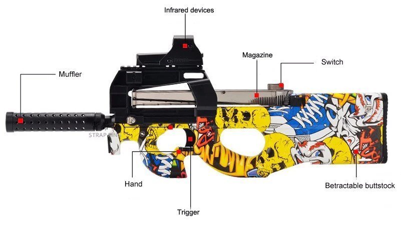 Ce pistolet à gel P90 est un pistolet à balles en gel avec une apparence cool, des performances puissantes et une grande flexibilité. Son design de style graffiti, son mode de fonctionnement manuel et automatique et son chargeur de grande capacité permettent aux joueurs de profiter d'une expérience immersive dans diverses scènes de tir.