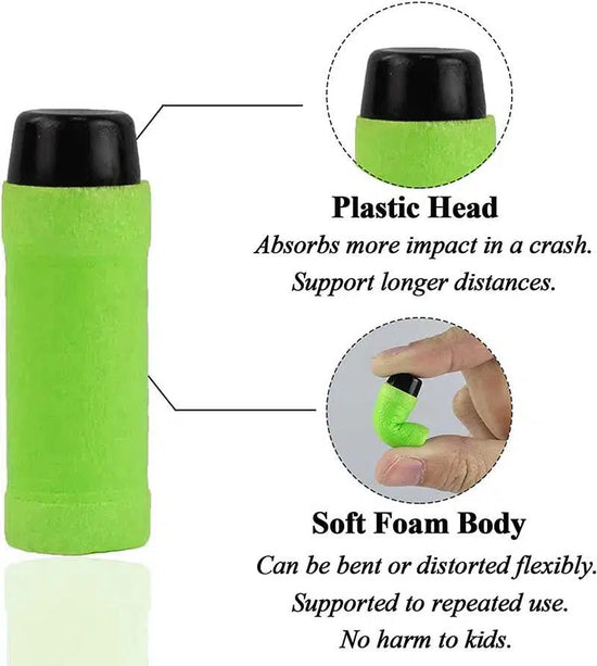 - 【 Fléchettes en mousse compatibles 】 : taille de la fléchette en mousse : 1,5 x 0,51 pouce/3,8 x 1,3 cm. convient également aux blasters Nerf utilisant des fléchettes courtes Stefan.